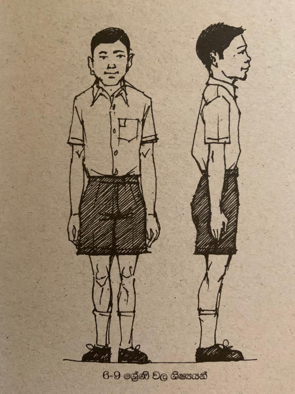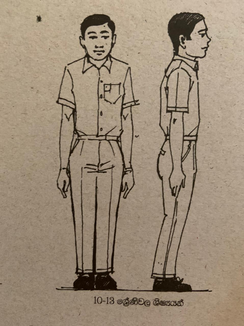 - කලිසමේ පහළ කෙළවර පාවහන් මට්ටමෙන් තිබිය යුතු අතර ඉහළ ඉස්සෙන ආකාරයෙන් පැලදීම නොකල යුතුය.